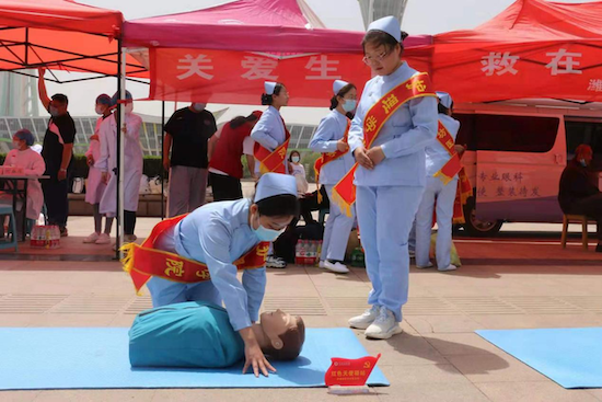 “您的双手应该这样放置才对。”“忘记按压动作力度了吗?没关系,我再演示一遍吧。”培训房间里,一名“红医天使”志愿服务队队员正在教村民做心肺复苏术。村民们踊跃参与,亲自上阵体验刚刚学到的急救技能。队员们跪在地上一遍遍演练操作,尽管身上疲惫,双手酸痛,可看到村民们终于掌握了要领,脸上便露出了开心的笑容。村民们也纷纷表示收获很大:“学到了心肺复苏术,对今后的生活很有用。”