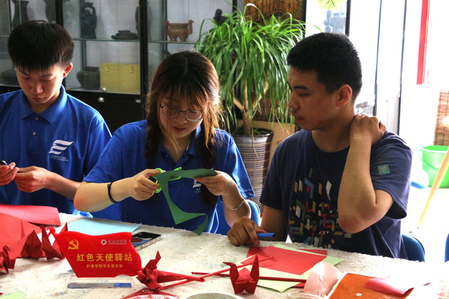6月30日,志愿者们来到潍坊市残联服务中心,与残障儿童一起互动。制作纸扇、折红船等手工活动拉近了志愿者与孩子们的距离,志愿者也由此耐心地为孩子们讲解红船承载着党的首创、奋斗、奉献精神;随后,志愿者与孩子们分享蛋糕,共同庆祝党的生日,让孩子们感受到党和国家深受人民的尊敬与爱戴;最后,大家一同歌唱《我和我的祖国》等红歌,表达了对祖国未来发展的美好愿景与跟党走的决心。
