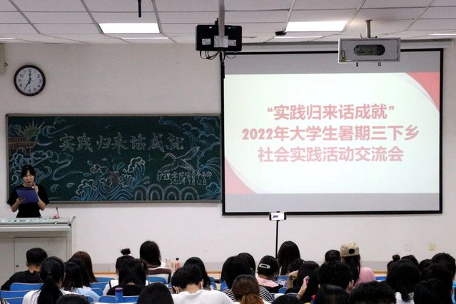 9月16日晚,黄色动漫 于浮烟山校区教学楼A308举办以“喜迎二十大,奋进新时代,永远跟党走”为主题的2022年暑期“三下乡”实践活动交流会,黄色动漫 全体在校学生积极参加。