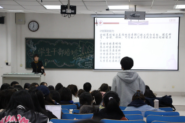 于颖荣以“如何做一名优秀的学生干部”为切入点,具体分析了优秀学生干部的标准、干部各方面素质及干部应具备的能力,要求学生干部应做到“内化于心,外化于行”,以身作则,正确引领同学们做好学院学风建设。随后,于颖荣从学院学生工作中所存在的现实问题出发,要求学生干部结合岗位思考自身定位,准确把握学生干部角色,明确工作目的、规范工作方式,最后,希望学生干部在工作中要加强学习,将今日所学化为实践,更好地完成学院及班级建设,在未来的发展中拥有更广阔的平台。