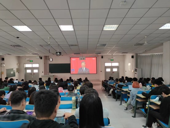 二十大报告共包括“过去五年的工作和新时代十年的伟大变革”、“开辟马克思主义中国化时代化新境界”、“新时代新征程中国共产党的使命任务”等十五个部分,以高举中国特色社会主义思想,弘扬伟大建党精神,自信自强、守正创新,踔厉奋发、勇毅前行,为全面建设社会主义现代化国家、全面推进中华民族伟大复兴而团结奋斗为主题,既回顾过往总结经验教训,又统筹规划,描绘未来蓝图,不断增强道路自信、理论自信、制度自信和文化自信。此次观看活动中,全体师生深受鼓舞,倍感振奋,现场不时爆发出热烈的掌声,纷纷表示习近平总书记的报告意义重大,催人奋进,一定要深入学习、认真领会、严格落实。
