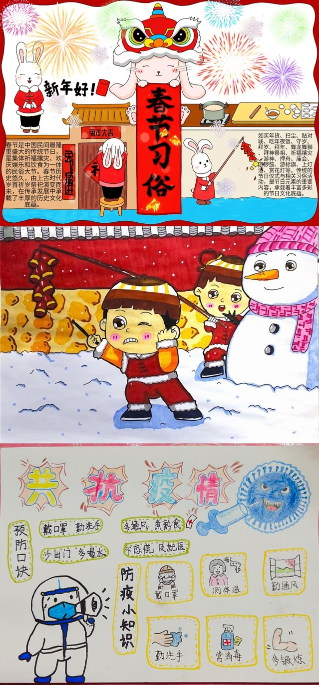 本次活动的开展,使同学们增长了疫情防控的科学知识,争做自身健康的“第一责任人”。同时,本次活动也丰富了同学们假期生活,让我们看到了不同的春节特色。