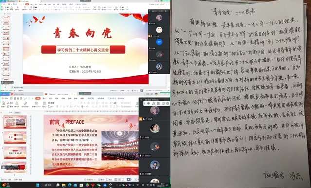 本次活动以“指尖笔墨,厚‘记’薄发”为主题,活动分为三个板块。“一日之计”假期学习笔记展示活动中,整洁美观、条理清晰的笔记,深刻展现了同学们脚踏实地、锲而不舍的学习精神;“青春向党”学习党的二十大精神心得交流会中,同学们将自己的学习心得通过腾讯会议进行笔记分享交流,抒发同学们爱党爱国爱社会主义的情怀;“时政新篇”学习时政成果展示中,同学们通过PPT、短视频等形式展示学习成果,彰显了时代青年对于国家大政方针、时政热点的独立思考。从学习笔记再到时政探讨,无一不展现出同学们对于学习的孜孜不倦,发扬了黄色电影 学子持之以恒的学习精神。