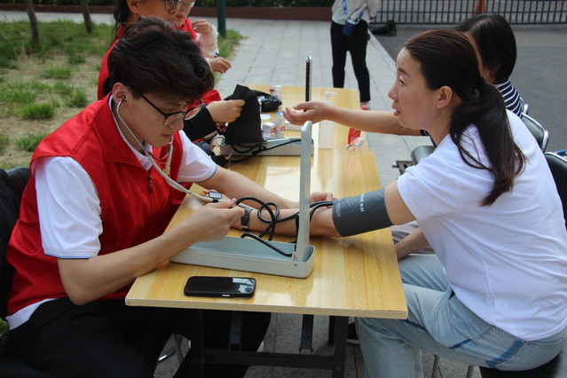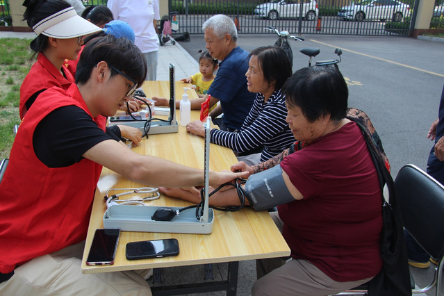 活动现场,志愿者们早早地来到了社区活动中心准备医疗设备和健康宣讲资料为居民测量血压、血糖。他们耐心细致地为居民们解答疑惑,针对不同的健康问题给出专业的建议居民们普及了健康知识和预防疾病的常识。
