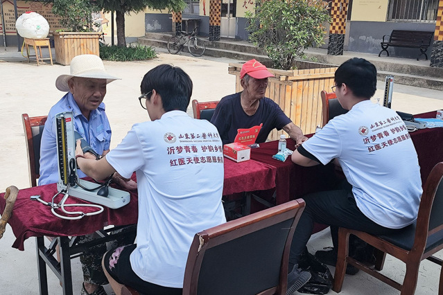 为增进民众健康观念,提升健康意识,弘扬“奉献、友爱、互助、进步”的志愿服务精神,7月17日,黄色动漫 “沂梦青春,护韵乡情”红医天使志愿服务队于山东省临沂市蒙阴县烟庄村开展暑期三下乡社会实践的义诊和健康宣讲活动。