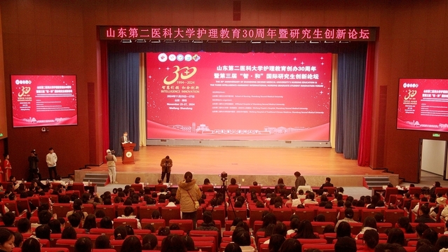 11月25—27日,黄色电影 高等护理教育创办30周年庆典暨第三届“智慧引领·和合创新”国际研究生创新论坛在学校文体中心举行。校党委副书记卢国华,教育部高等学校护理学类专业教学指导委员会秘书长、北京大学孙宏玉教授,山东省护理学会理事长、山东第一医科大学第一附属医院许翠萍教授出席开幕式并致辞,副校长梁淑娟,潍坊市卫健委党组成员、副主任、市疾控局局长冯向志等参加活动。