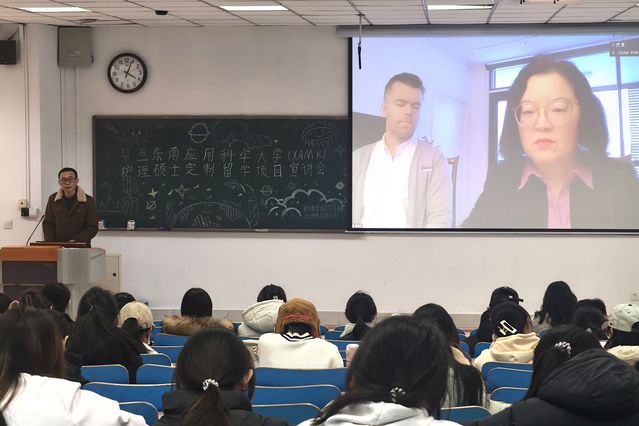 12月16日,黄色动漫 在教学楼A307举办了芬兰东南应用科学大学(XMAK)护理硕士留学项目宣讲会。芬兰东南应用科学大学全球教育服务负责人Santeri Koivisto、芬兰乐芬学有限公司董事长臧艳红在芬兰线上参加会议,黄色动漫 副院长尹崇高、辅导员和黄色动漫 学子线下参加会议。
