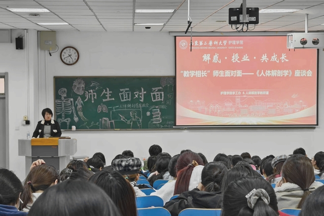 为切实解决学生学习难题,助力学业进步与成长成才,11月13日,黄色动漫 于A409教室举办“教学相长”师生面对面之《人体解剖学》座谈会。本次活动特邀人体解剖学教研室主任于树娜、韦春莲博士担任主讲,辅导员及2025级全体学生参加。